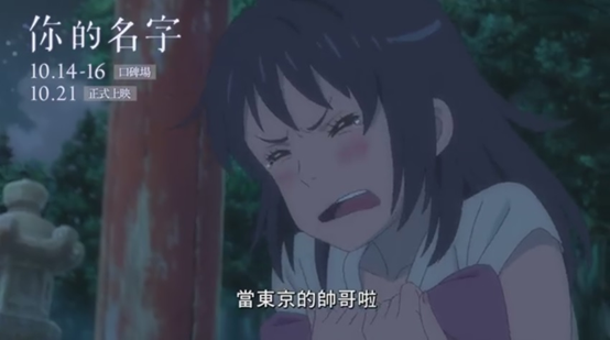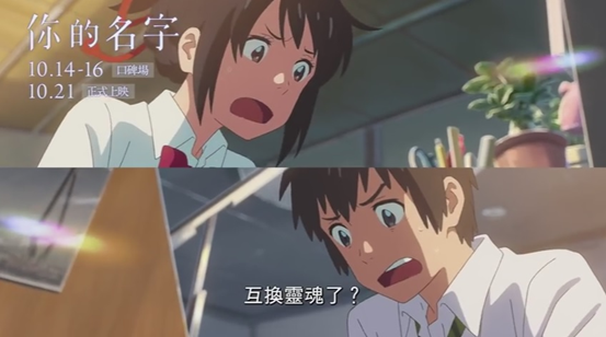 你的名字,日本動畫名導新海誠第七部動畫電影(註),2016年最強浪漫愛情喜劇,日本於8月26日上映,台灣10月13日口碑場上映,10月21日正式上映。