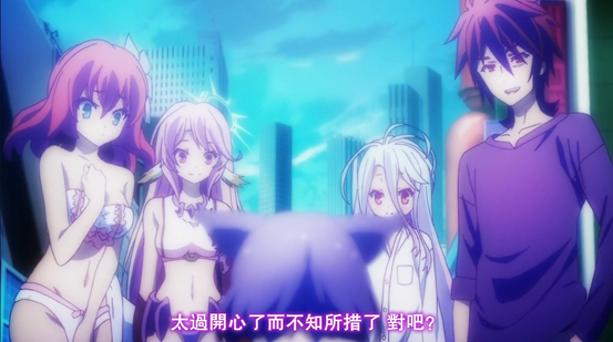 NO GAME NO LIFE,中譯遊戲人生,作者榎宮祐,2012年開始小說連載,2014年4月開始播映動畫,同年6月結束,全作共12話,第二季遙遙無期,不過倒是有劇場版的消息,希望不要像富奸一樣,只能期待子孫把結局燒給我……
