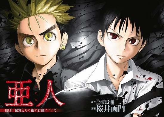 亞人,原作櫻井畫門,2012年7月漫畫連載,2015年6月宣布製作三部劇場版,同年9月則宣布製作動畫,動畫於2016年1月首播,兩個版本的製作和配音陣容相同。